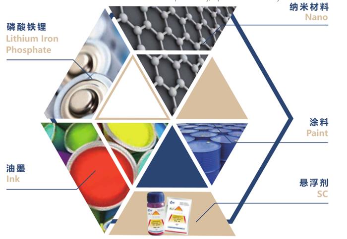 Bahan Nano: oksida logam, Bahan Magnetik, Industri kertas, industri Optoelektronik.